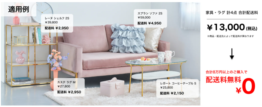 Franc franc 에서는 대형 가구를 포함해 합계 8만엔 이상의 구입으로 배송료가 무료가 되는 캠페인을 개최하고 있습니다!