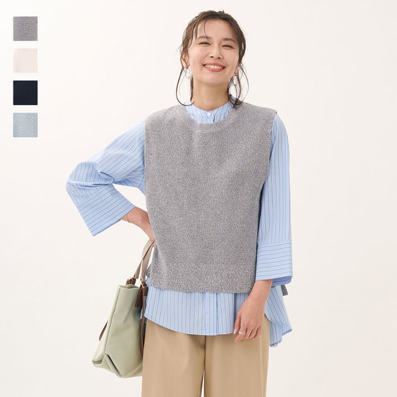 - 린넨 터치 크루 넥 니트 조끼