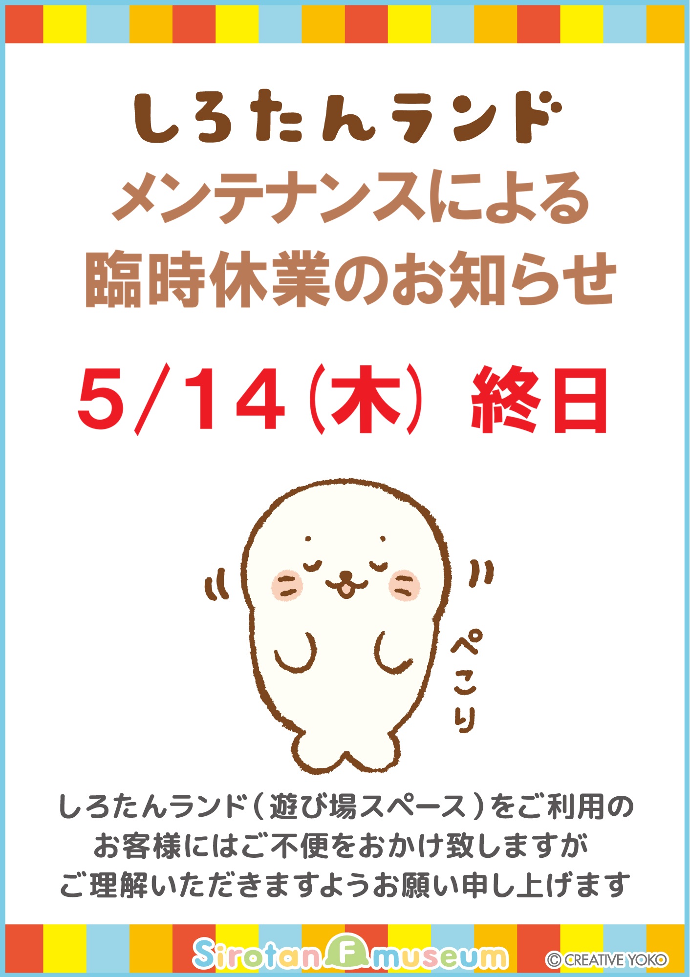 - 시로 탄 랜드 (놀이터)에서 임시 휴업 통지