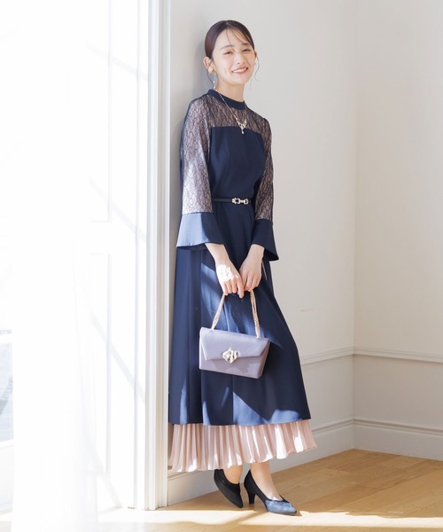 스탠드 칼라 슬릿 원피스+플리츠 스커트♪