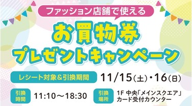 패션 점포에서 사용할 수 있는 쇼핑권 선물 캠페인【11/15(토)・11/16(일)】