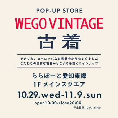 WEGO VINTAGE POP-UP STORE 기간 한정 개최! 【10/29(수)~11/9(일)】