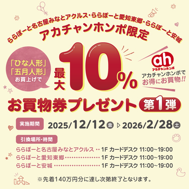 【akachan honpo 한정】히나 인형·5월 인형 매상에서 최대 10% 쇼핑권 선물(제1탄)