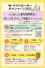 - マイベビーカーキャンペーン2025 ららぽーと愛知東郷限定!1月~3月スタンプ増量キャンペーン