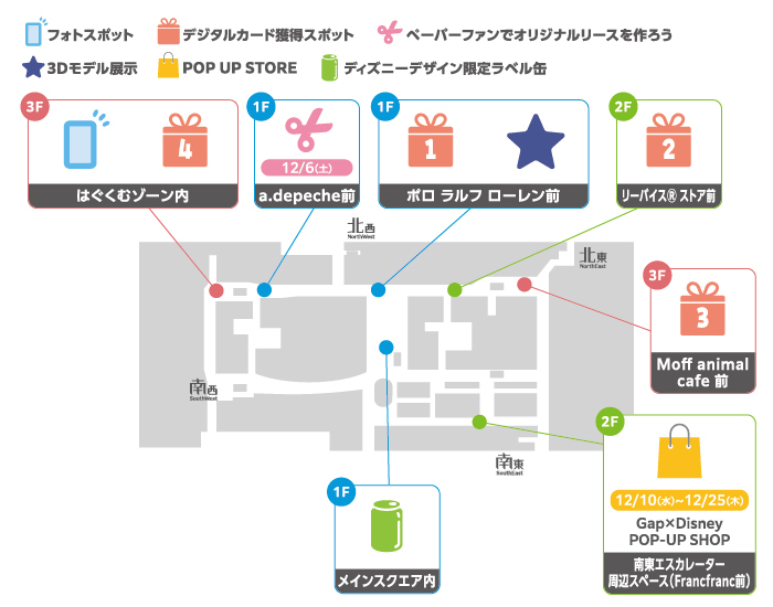 랠리 지점①:1F 폴로 랄프 로렌전, 랠리 지점②:2F Levi's (R) 스토어전, 랠리 지점③:3F Moff animal cafe전, 랠리 지점④:3F