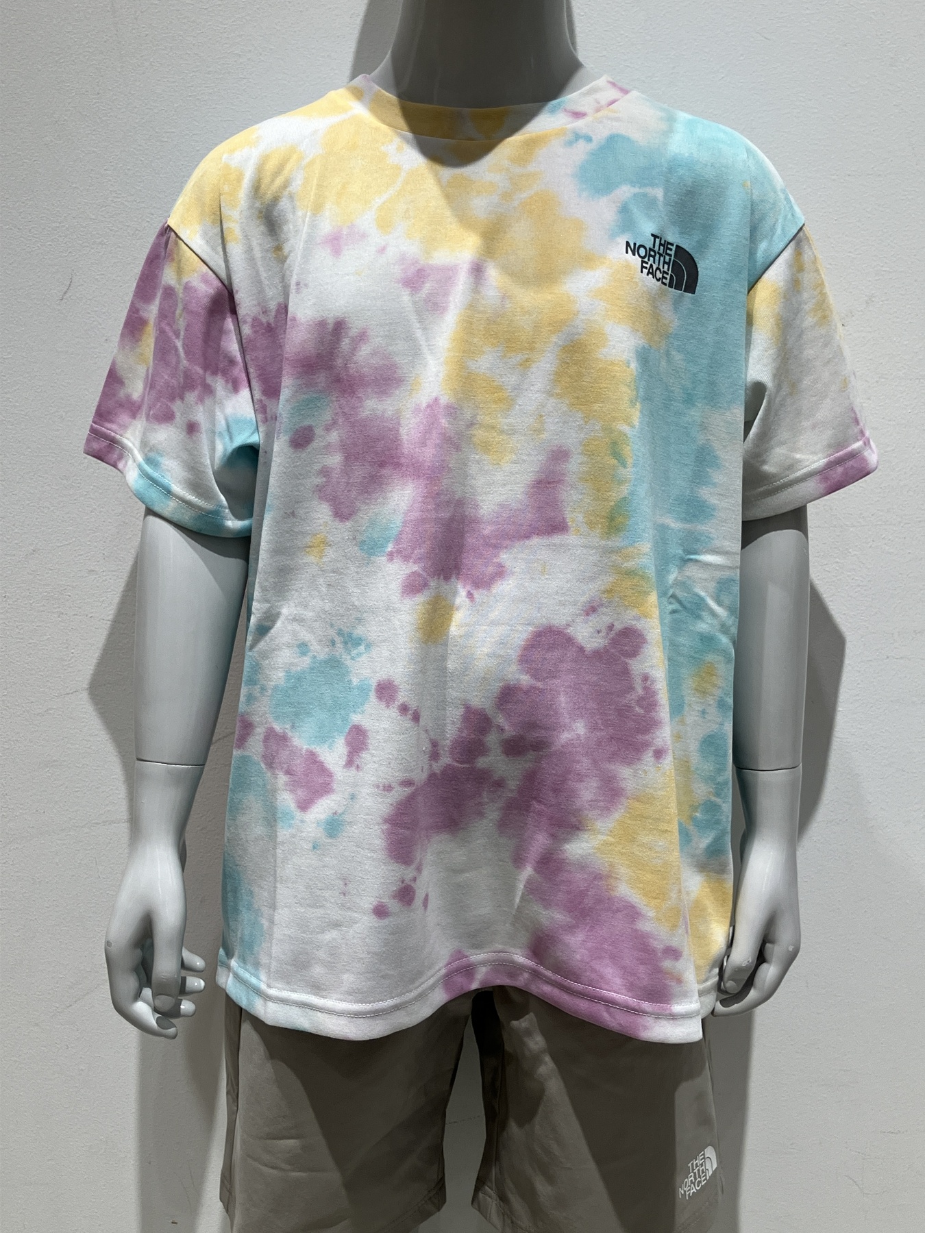 안에는 흡한 속건의 타이 다이 무늬의 T 셔츠를 맞추고, 땀 흘리는 날도 쾌적하게. 코데의 악센트도되는 화려함이 포인트입니다.