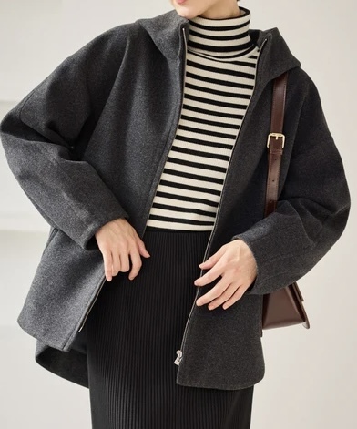 - 2WAY에서 즐길 수 있다! 더블 페이스 칼라 제거 기모 가디건