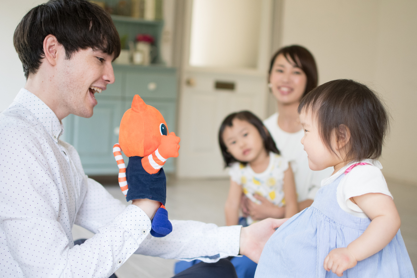 아기 코스에서는 외국인 강사와 일본인 파트너의 더블 체제.