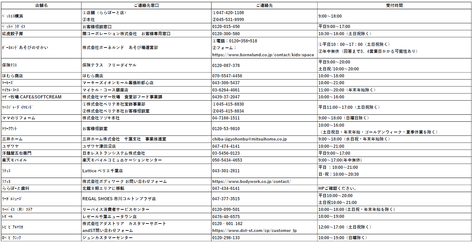 10/13(월·축)북관Ⅱ기 에리어 영업 종료 점포의 Contact ⑤