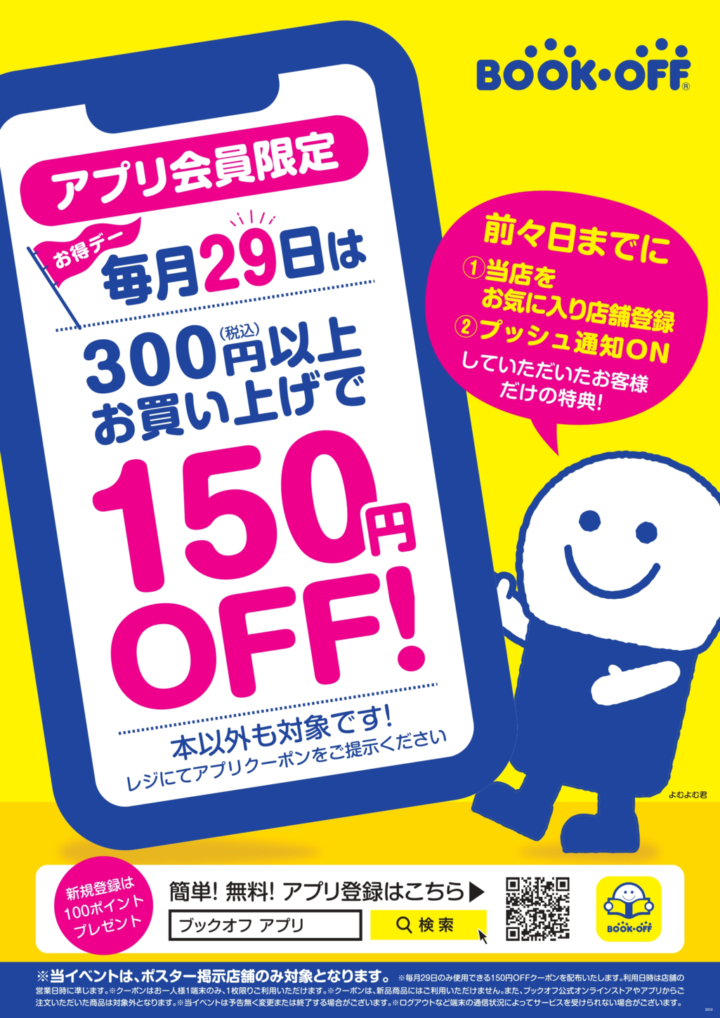 ・앱 즐겨찾기 등록 회원 한정 매월 29일은 300엔 구입으로 150엔OFF 쿠폰을 전달