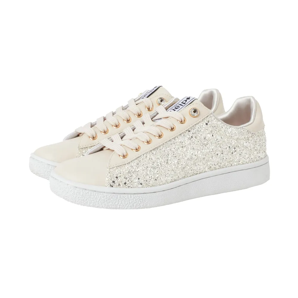 「럭셔리한 분위기를 감싼 스니커즈는, 휴일 시즌의 기분을 기쁘게 북돋워 줄 것 같다! 캐주얼 스타일도 드레스업시켜 주는 샴페인 골드의 반짝이가 눈길을 끕니다.은설 위를 걷고 있는 한발은, 겨울의 외출이 기다려지겠지요」(기프트콘