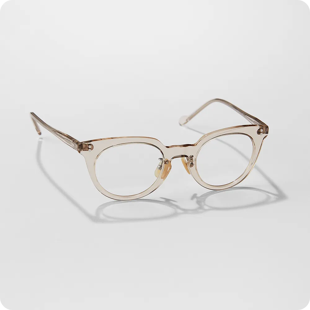 폭스형의 샤프하고 큐트한 아세테이트제 프레임의 안경.클리어인 컬러가 빈티지감을 연출해 주는, 액세서리 감각으로 즐길 수 있는 안경입니다.
