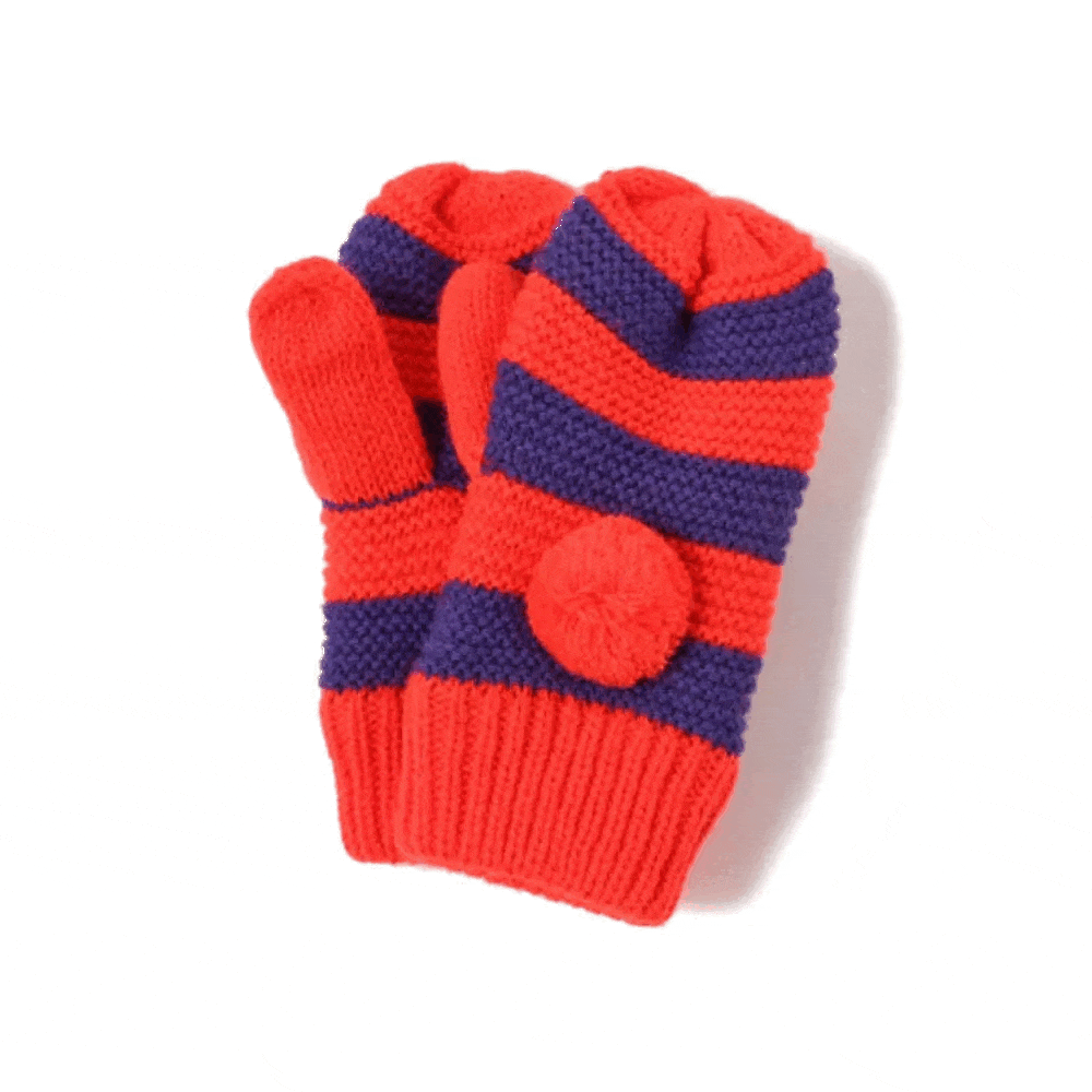 「건강한 굵은 테두리의 장갑으로, 눈놀이도 헷챠라! Kids의 마음을 간질이는 퐁퐁도 기쁜 악센트. 오렌지×퍼플, 그린×아이보리와, 센스가 빛나는 색의 편성도 멋지다.동 디자인의 머플러와 조합해도 멋진 선물이 됩니다」(선물 컨시어지)