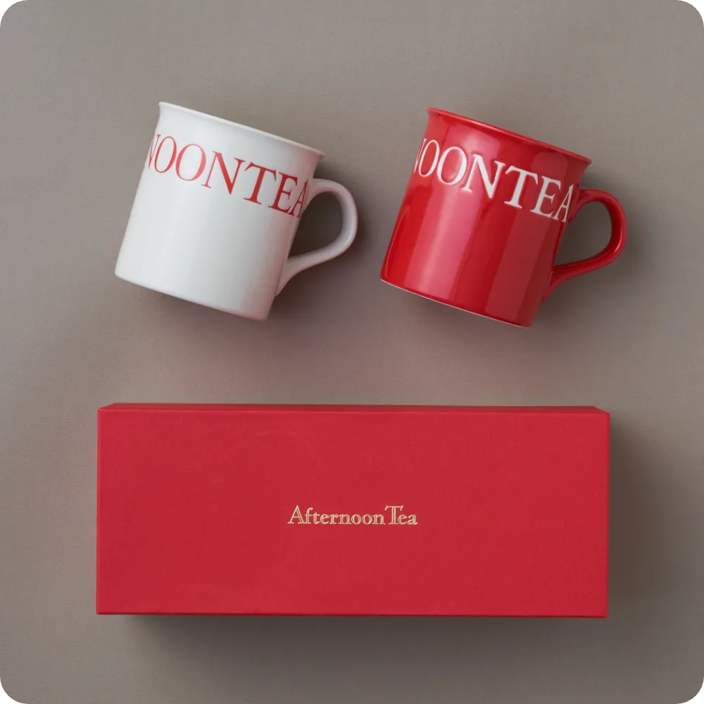 "집 크리스마스 테이블 코데에 도입하고 싶은, 홀리데이 무드에 딱 맞는 레드×아이보리의 머그컵 페어 세트. 찬장에 두는 것만으로 기분이 오를 것 같다. 우에무라 와카나)