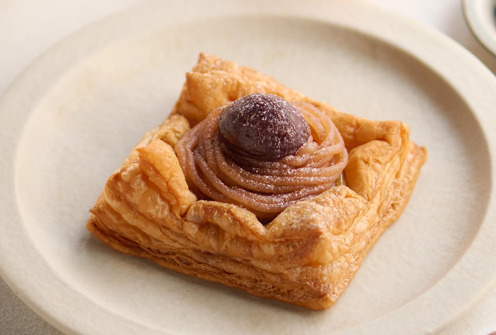 정중하게 접어 구워낸 729층의 바삭바삭 식감의 파이 천에, 점포에서 완성하는 향기 높은 호지 차 커스터드 크림과, 밤 페이스트를 충분히 거듭했습니다. 게다가 그 위에는, 요염한 떫은 밤의 감로 삶은을 토핑. 마무리 분당과 호지 차 파우더가 고소함을 돋보이게합니다. 한 입마다 깊어지는 가을의 향기와 맛을 즐길 수 있는, 품위 있고 호화스러운 Montblanc 파이입니다.