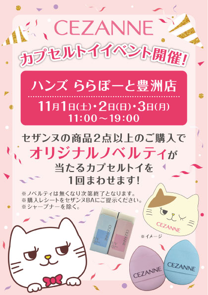 출점 브랜드:세잔느・캔메이크・HOMEI ※HOMEI는 11월 1일(토)・2일(일)만