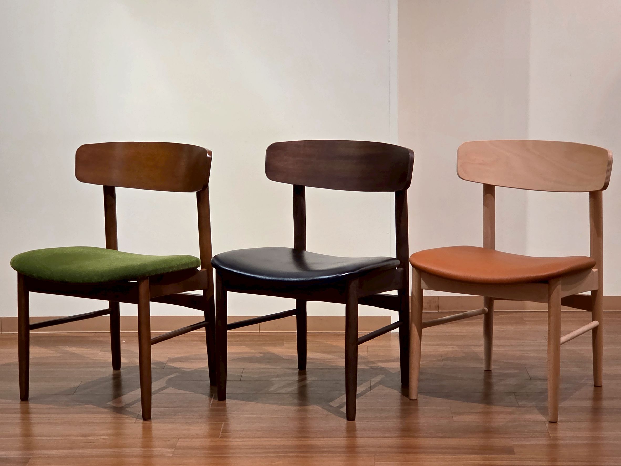 カラーバリエーションは、定番の組み合わせに加え、3種の木部と16種の張地から自由に選べるパターンオーダーにも対応。