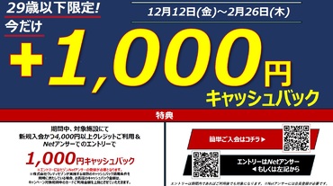 - 29세 이하 한정! 지금만 +1,000엔분 캐쉬백 캠페인