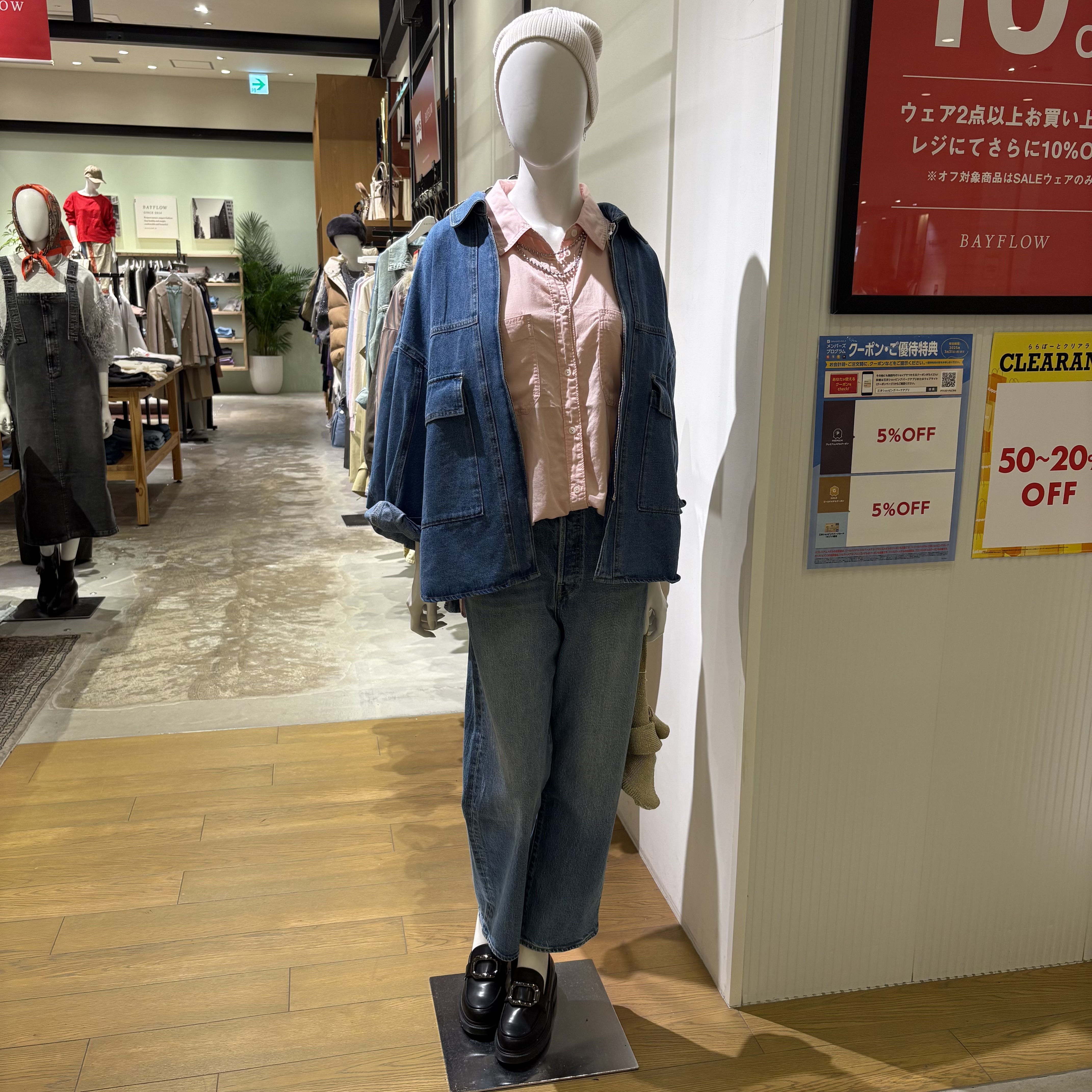 버튼 플라이로 배 주위를 깨끗이 보여주는 데님!