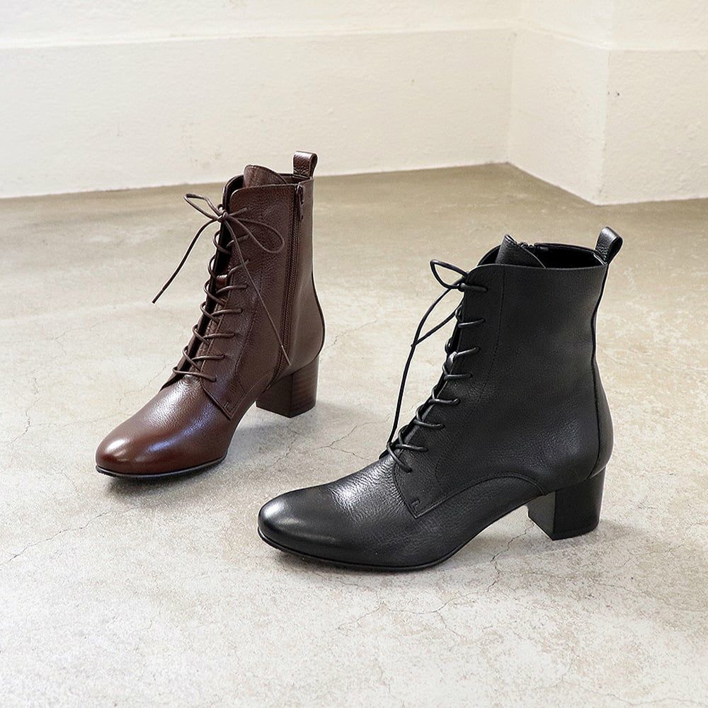 광택과 투명감을 겸비한, 품위있는 가죽을 사치스럽게 사용한 레이스 업 부츠. 가죽의 질감을 마음껏 맛볼 수 있도록, 디자인은 굳이 심플하게. 다리에 부드럽게 친숙한 부드러운 감촉도 매력입니다.