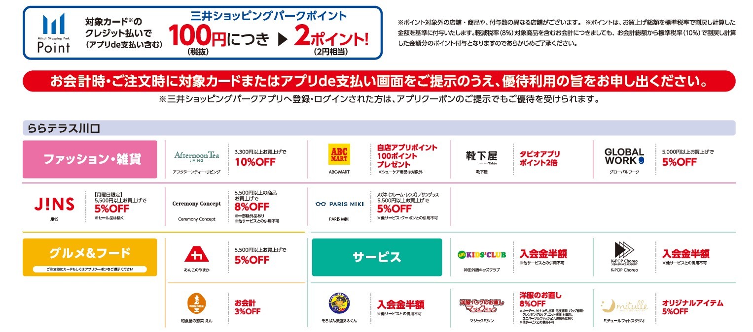 미쓰이 쇼핑 파크 카드 "세종"우대 목록