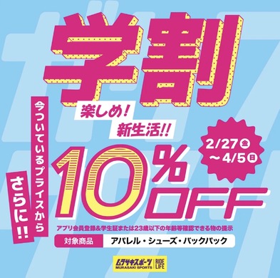 【기간 한정】 대상 아이템 10 % OFF! 신생활의 학할 U23 캠페인