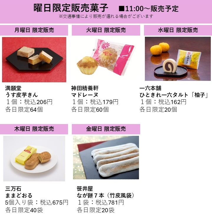 ■ 요일 한정 판매 과자(각일 11시~) ※교통 사정에 의해 늦는 경우 있어