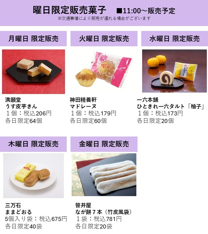 목요일: 삼만석/마치도오루(5개입, 1봉)…세금 포함 675엔(각일 한정 40봉)