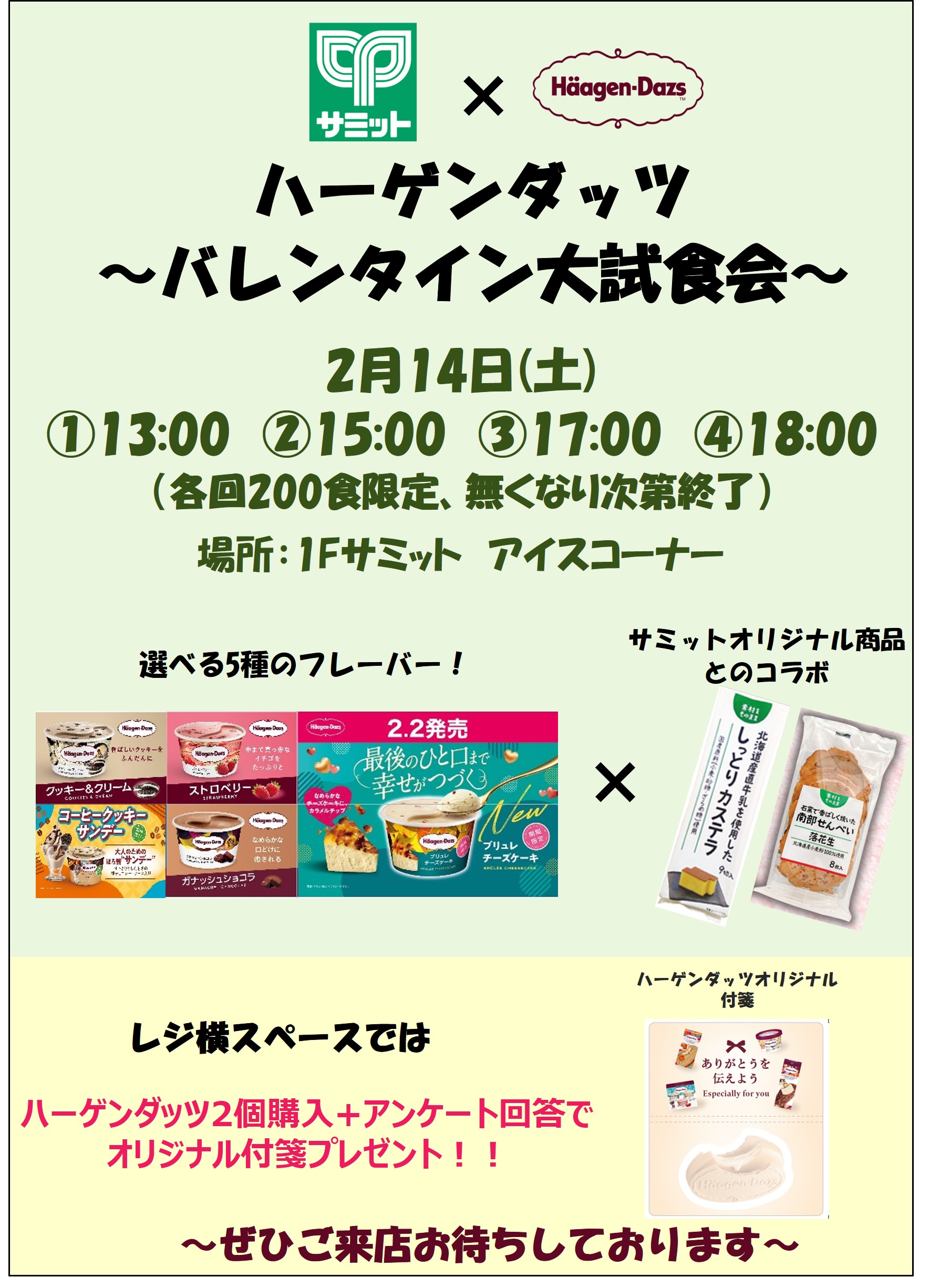- 【서밋 스토어 라라 테라스 기타 아야세 점】 2/14 (토) 한정! 하겐다츠 발렌타인 대시식회 개최!
