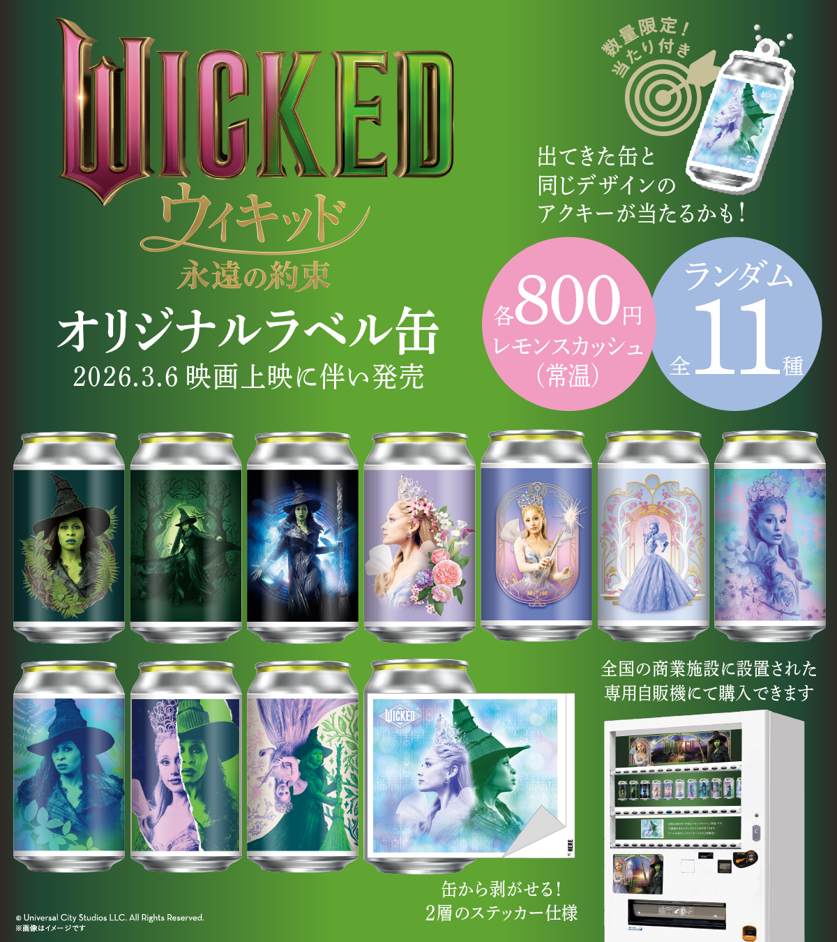 영화 위키드 영원의 약속 오리지날 라벨 캔이 전국의 영화관과 상업 시설에서 발매 결정! 라벨은 전 11종! 수량 한정으로 아쿠키도 맞을지도!