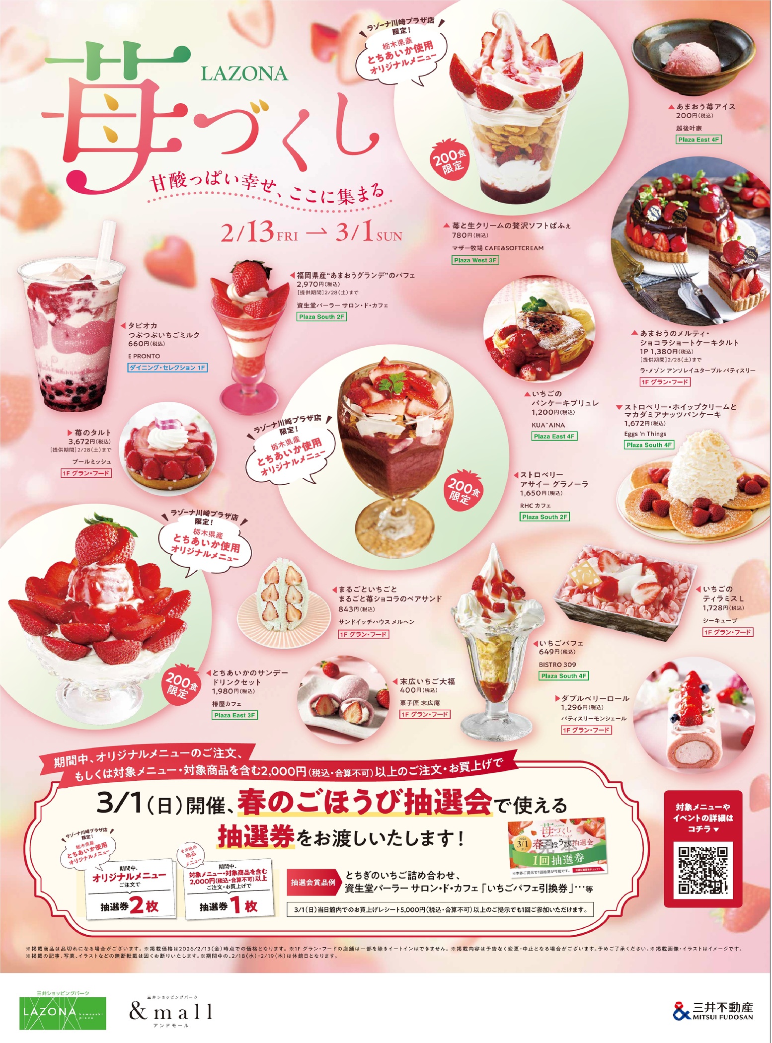 ラゾーナ川崎プラザの各店舗では苺がぎゅっと詰まったメニュー・雑貨がたくさん!