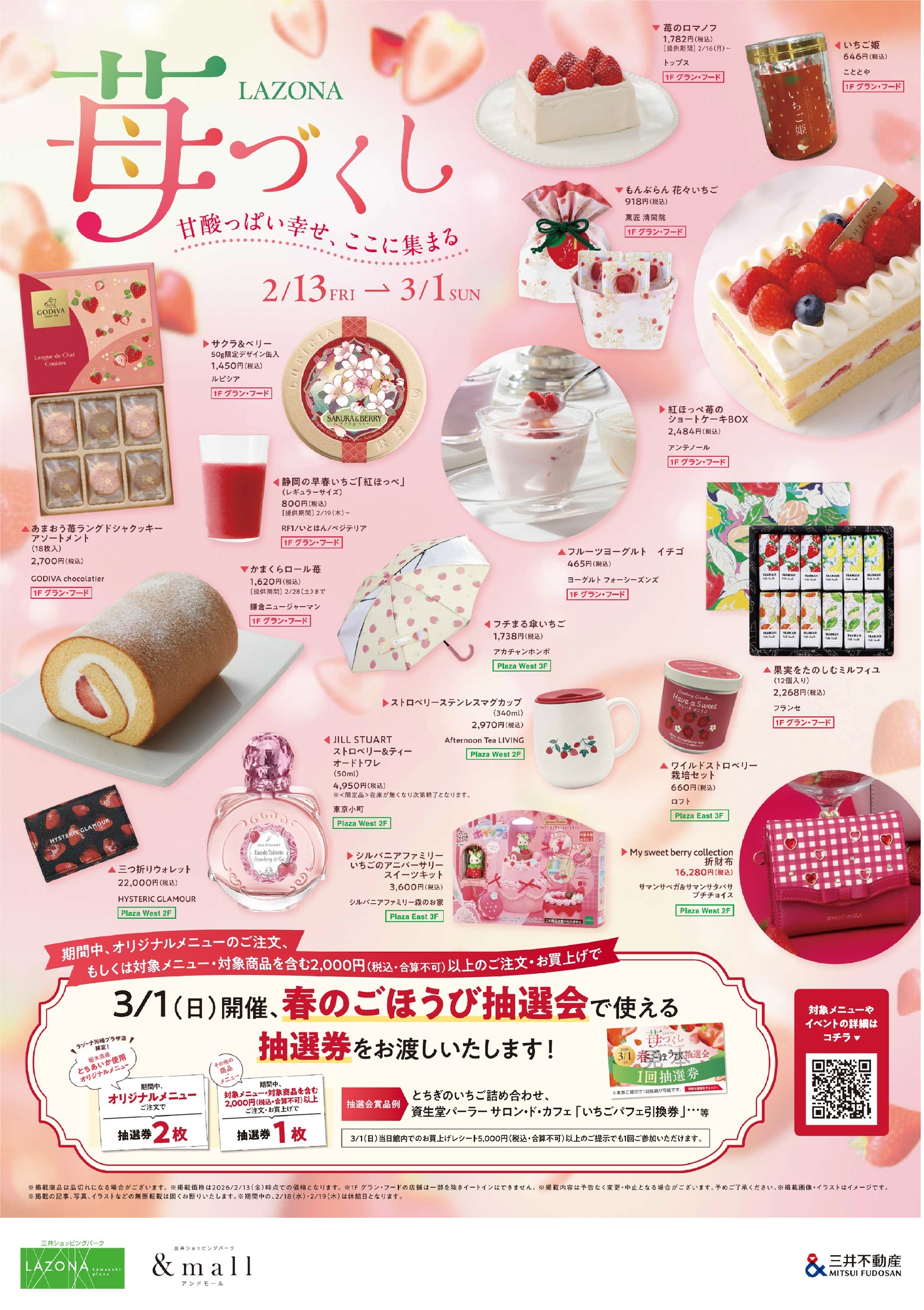 ■3/1(日) LAZONA苺づくしイベント 開催! (会場:2F ルーファ広場)
