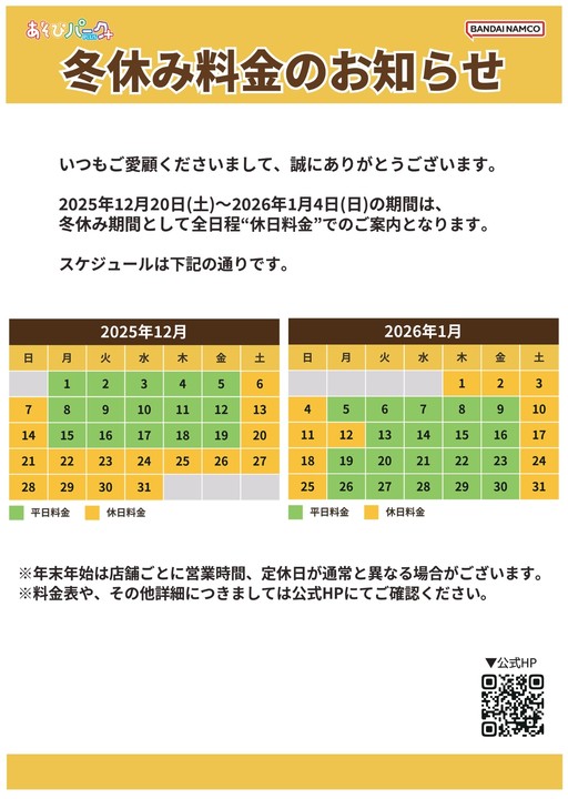 【놀이 파크 PLUS】겨울 휴가의 요금 플랜에 대해서