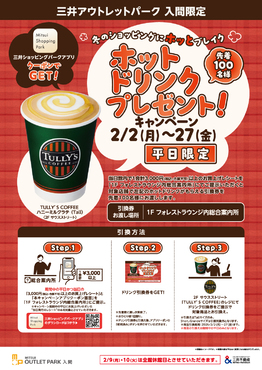 【三井ショッピングパークアプリクーポン】【2/2(月)~2/27(金)平日限定】ホットドリンクプレゼントキャンペーン