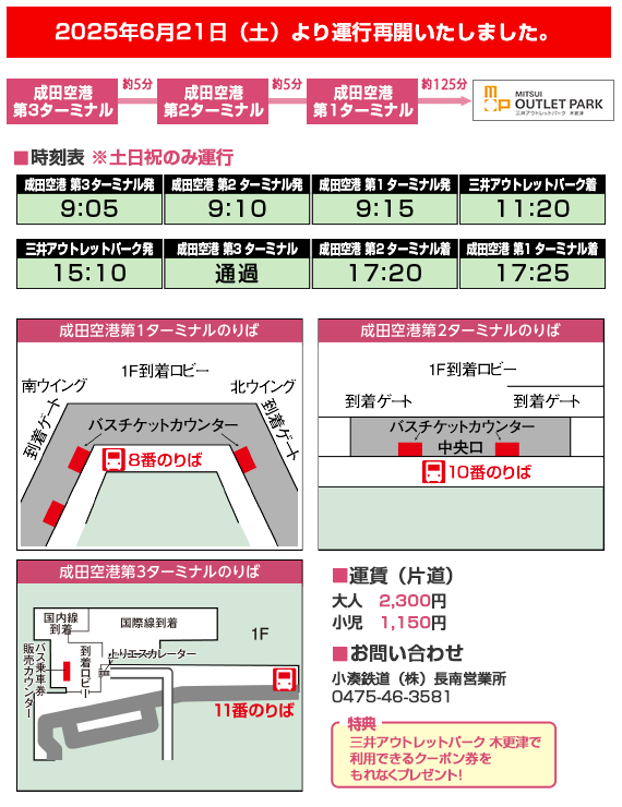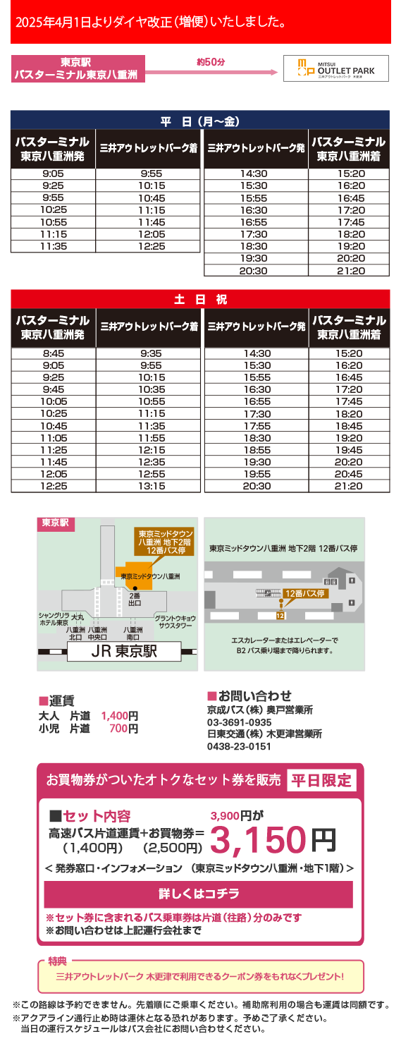 | 평일 | 9:55 | 도쿄역 야에스구치 | 10:45 |