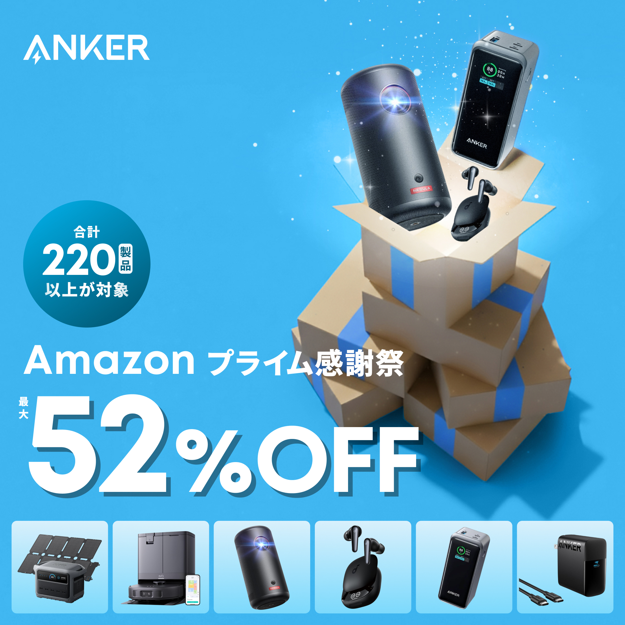 Anker Store KISARAZU 에서는, 10월 4일(금)부터 10월 10일(목)까지의 7일간, 「프라임 감사제」를 개최합니다! 인기 모바일 배터리, 급속 충전기, 무선 이어폰, 휴대용 전원 등 인기 Anker 제품을 최대 52%OFF의 특별 가격으로 구입할 수 있습니다. 또한, 호화 선물 캠페인도 실시! 대상 프로젝터, 휴대용 전원, 로봇 청소기를 구입하시는 고객에게 편리한 전용 액세서리를 선물합니다