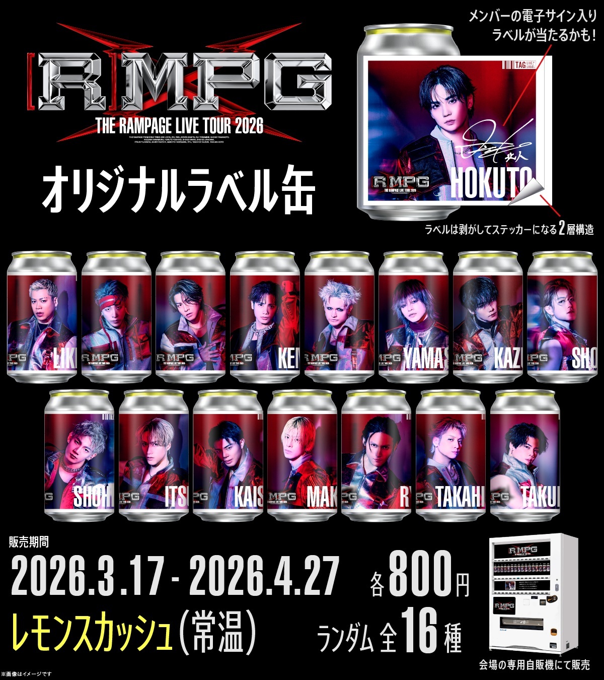 - 「THE RAMPAGE LIVE TOUR 2026“(R)MPG”」 개최 기념, 오리지널 라벨 캔 판매 결정!