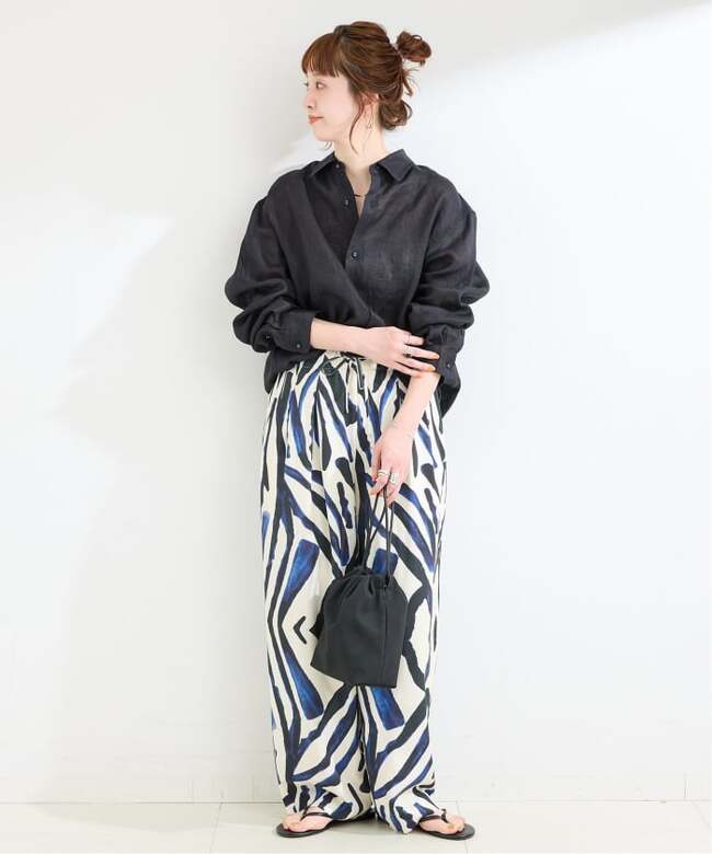 【새로운 자신】 아쿠아 프린트 택 풍선 바지