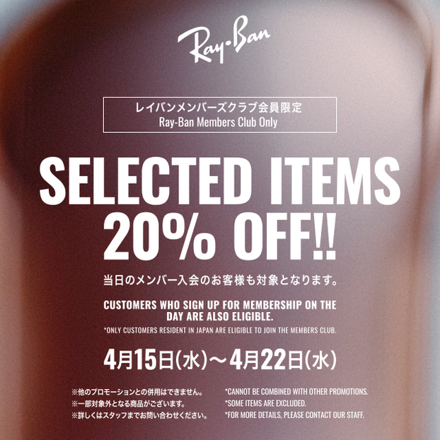 1937년에 탄생해, 최첨단의 디자인과 기능을 아울러 전세계의 사람들로부터 사랑받는 아이웨어 브랜드 「Ray-Ban」의 직영 스토어. Ray-Ban의 크리에이티브한 스피릿과 LIFE 스타일을 표현한 디자인.벽면에는 Kids 모델이나 직영점 한정 상품등을 포함한 안경 프레임과 선글라스 맞추어 550종 이상의 아이웨어를 준비하고 있습니다.