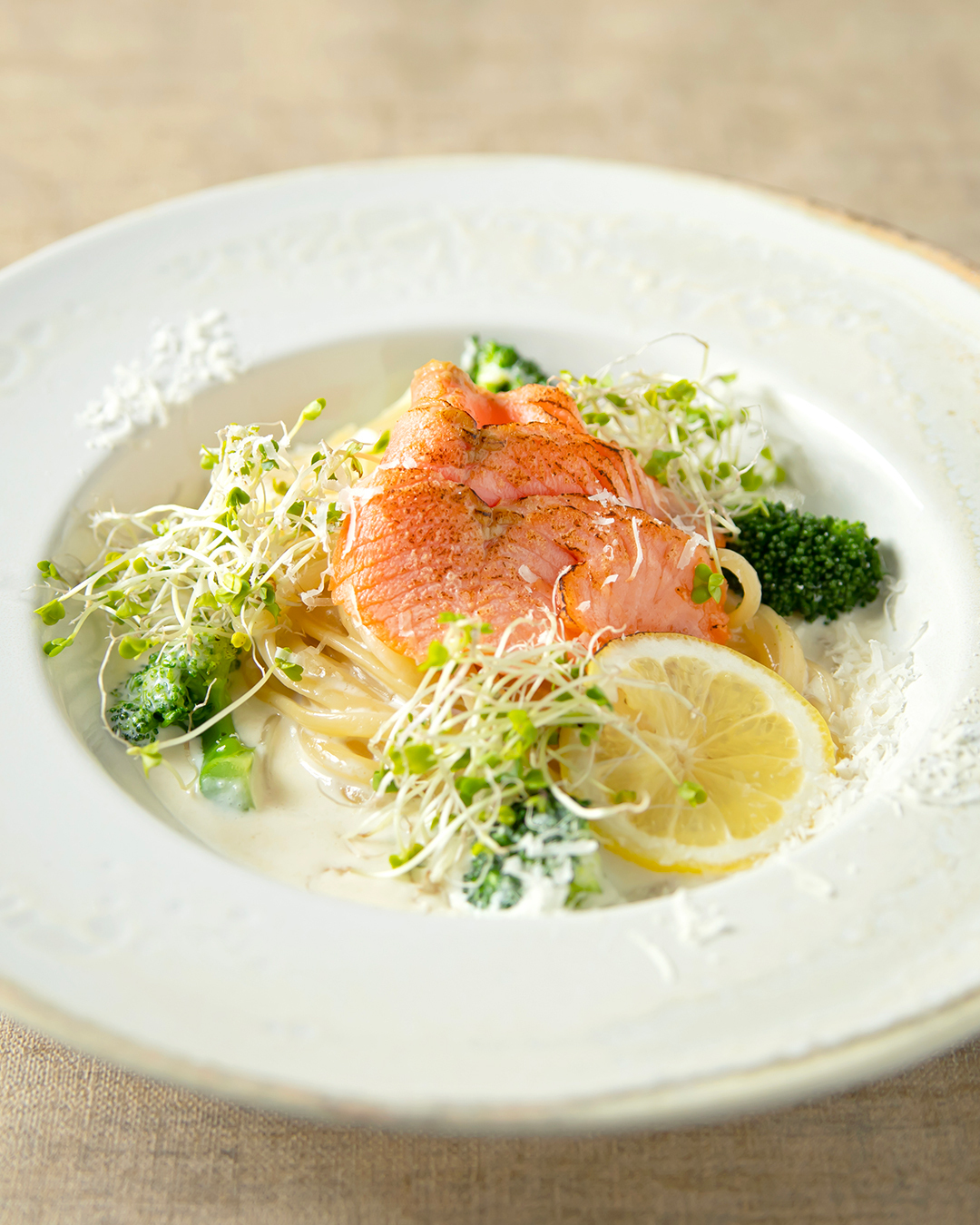【春グルメ】〔期間限定〕スモークサーモンとブロッコリーのレモンクリームパスタ TOOTH TOOTHリングイネ