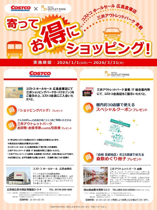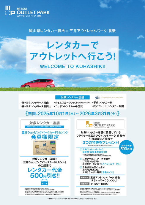 MITSUI OUTLET PARK KURASHIKI × 오카야마현 렌터카 협회 렌터카로 아울렛에 가자!