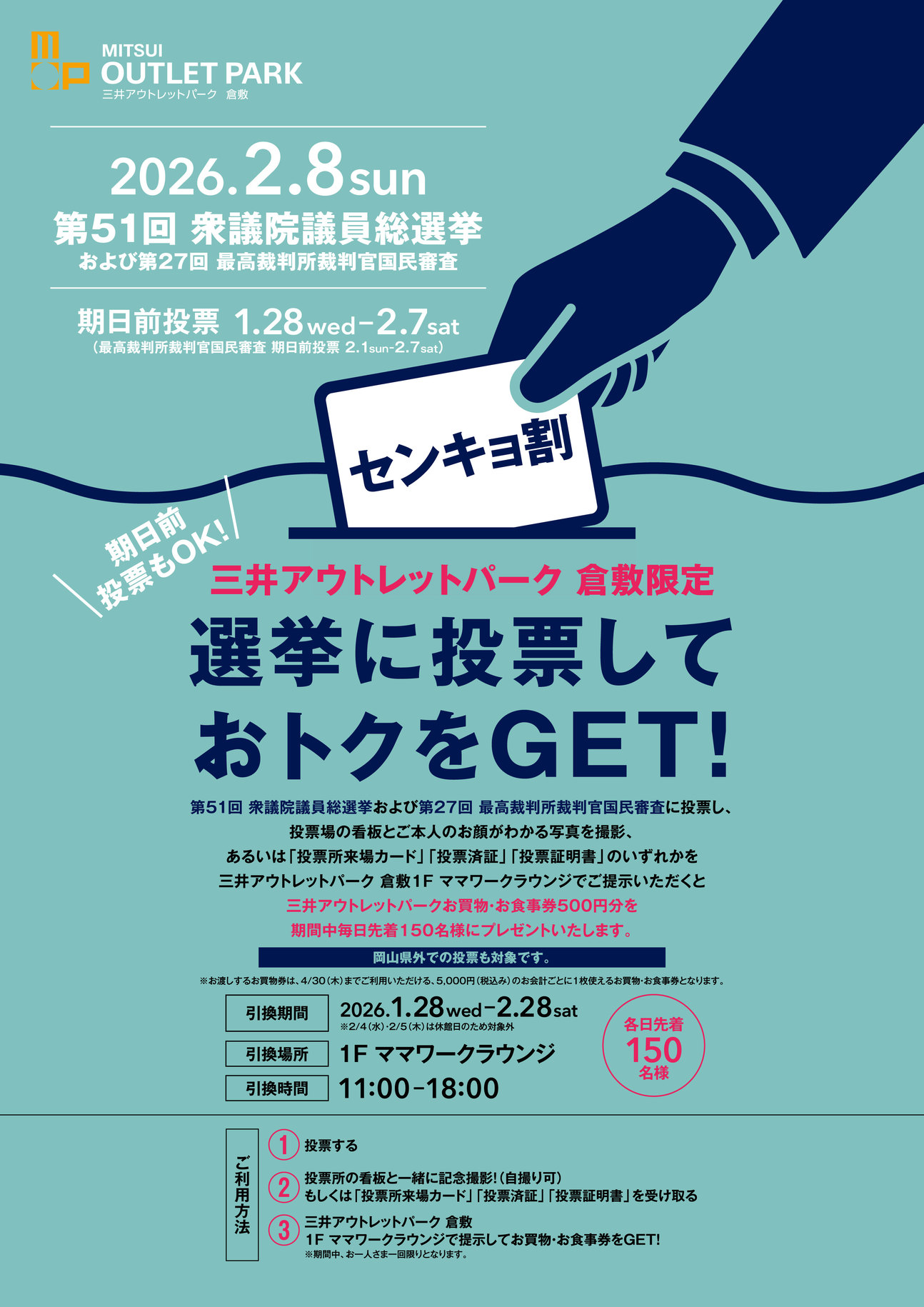 【MITSUI OUTLET PARK KURASHIKI 한정】센쿄 할인 개최