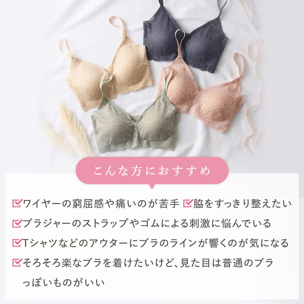 겨드랑이 깨끗이, 가슴의 높이도 유지해 주는 컷오프 레이스를 사용한 논 와이어 브래지어♪