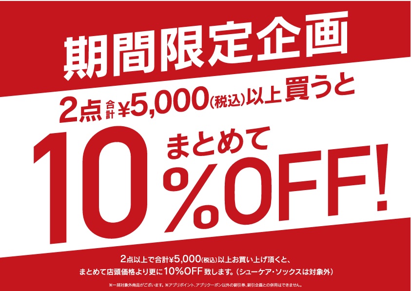 ¥5,000(세금 포함) 이상 2점 정리 구입 10%OFF ※슈케어・삭스 대상외