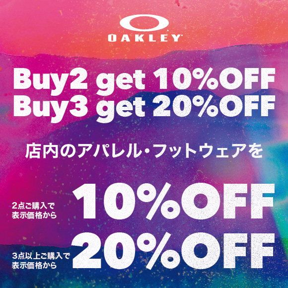 상단뉴스매장 뉴스Buy 2 get 10%OFF/Buy 3 get 20%OFF 신춘 세일 Buy 2 get 10%OFF/Buy 3 get 20%OFF 신춘 세일 Sports & Outdoors 2F OAKLEY Oakley 에서는 1/2(금)~1/12(월・축)까지의 기간 한정으로 점내의 어패럴 풋웨어 2점의 구입으로 표시 가격으로부터 10%OFF, 또는 3점 이상의 구입으로 표시 가격으로부터 20%OFF가 되는 세일을 개최합니다. ※일부 제외품 있음자세한 내용은 직원까지 Sports & Outdoors 2F OAKLEYOakley 電話番号 0594-45-8845 아이콘 설명 보기 아이콘 설명 보기