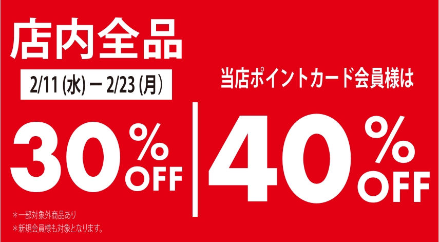 ★ 점내 전품 30%OFF, 로열티 카드 회원님은 40%OFF! !