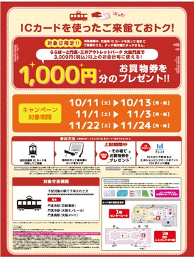IC 카드를 사용한 내관에서 유익! 대상일 한정 1,000엔분의 쇼핑권을 선물!