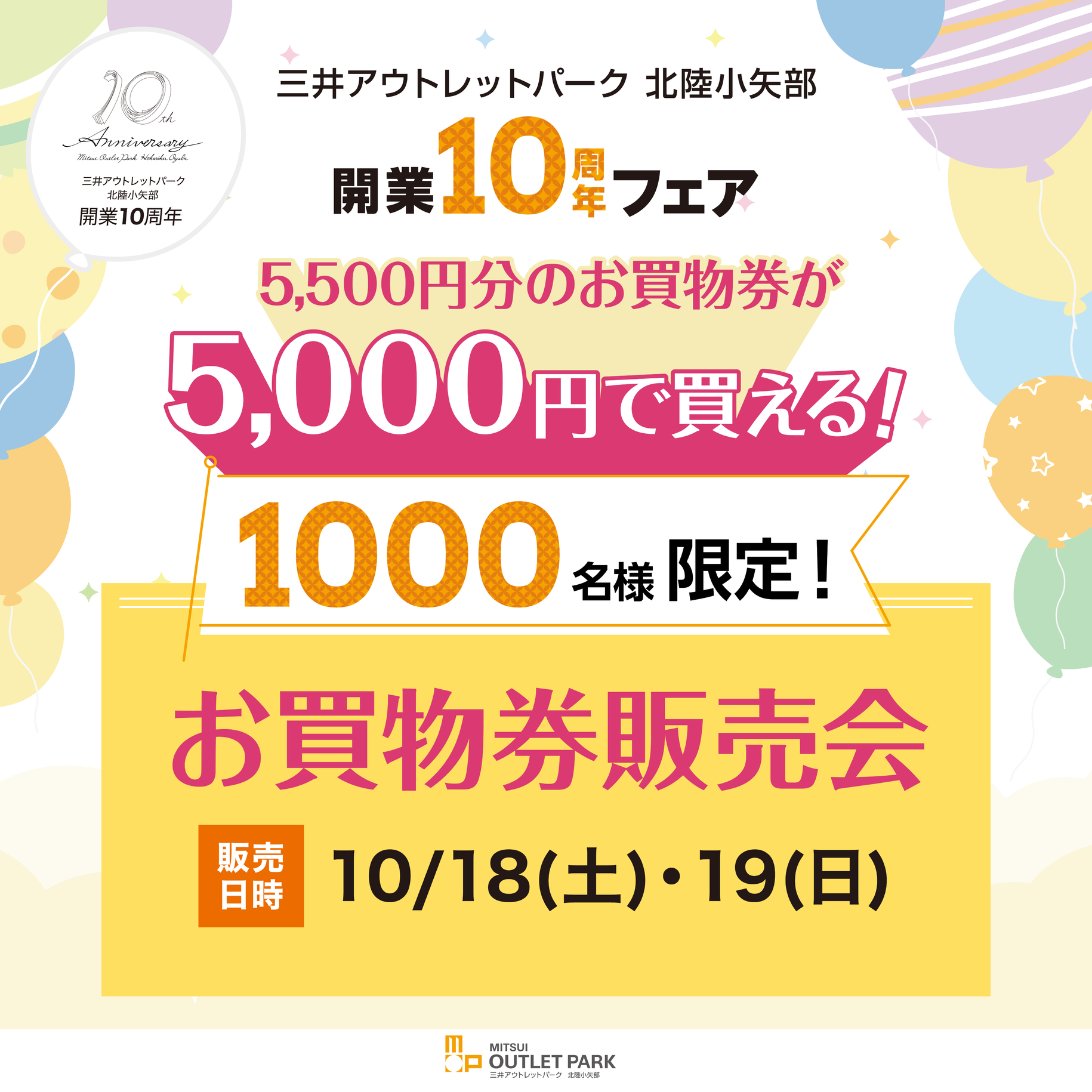10/17(금)~26(일)는 MITSUI OUTLET PARK HOKURIKU OYABE의 10주년 페어를 개최!