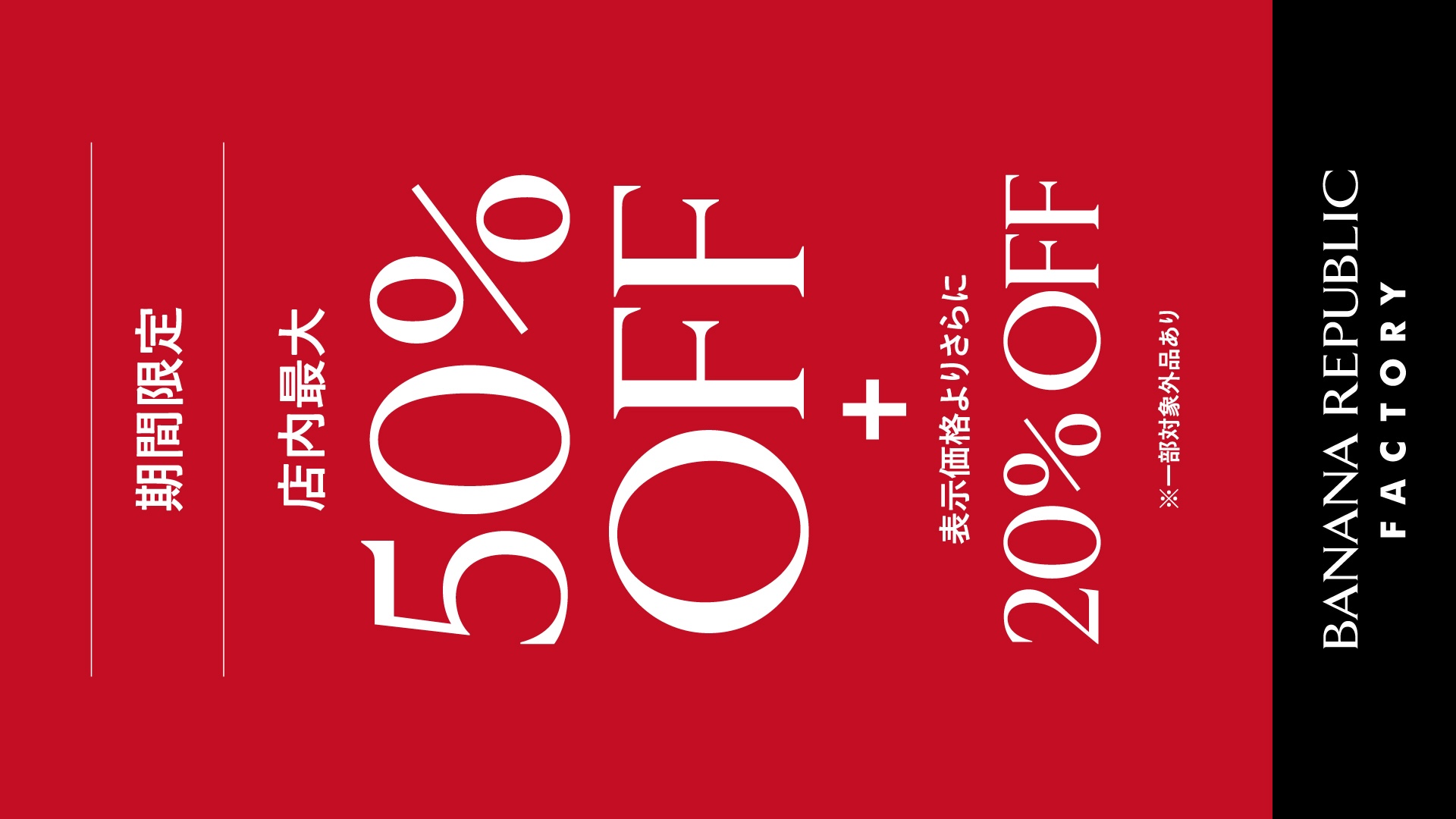 점내 전품 50%OFF+레지에서 전품 한층 더 20%OFF
