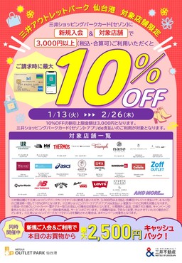 三井アウトレットパーク 仙台港 対象店舗限定 ご請求時に最大10%OFF